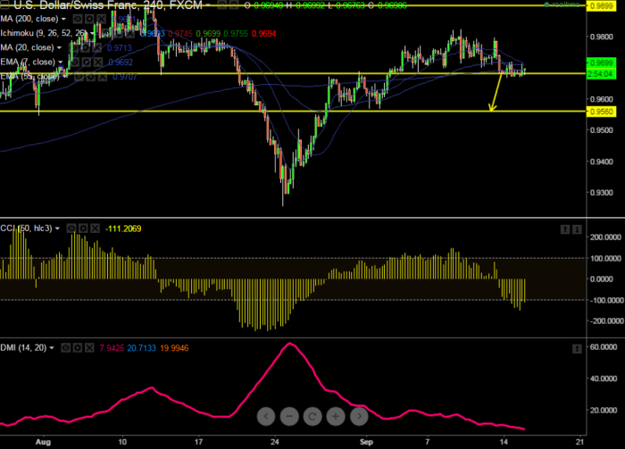- USD/CHF has broken major support 0.9680 and declined till 0. is currently trading around 0.96770. The pair yesterday recovered till 0.9718 after making a low of 0.96675.