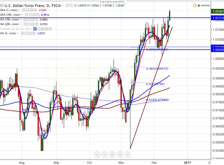 - USD/CHF trades higher and breaks major resistance at 1.02135 after Fed hiked interest rates by 25bpbs.