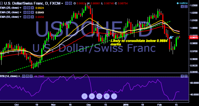 Short USD/CHF at current rate around 0.9880, stop loss 1.0073 and target 0.9661levels.