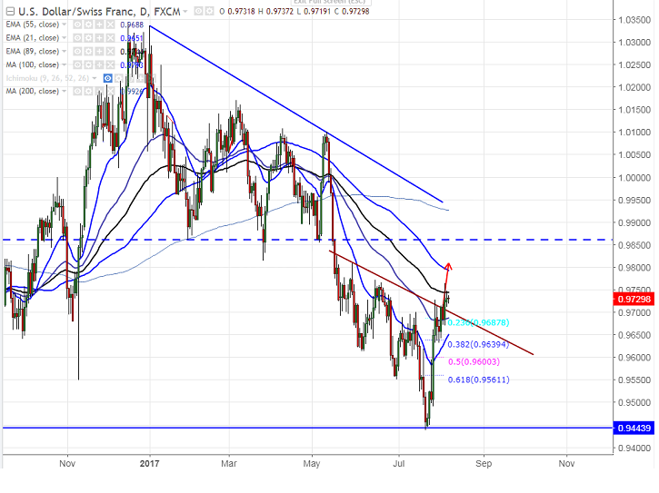 - The pair minor bullishness can be seen only above 0.9770 (Jul 15th high) and any break above will take the pair till 0.9808 (May 30th 2017 high)/0.9847 (61.8% fibo).