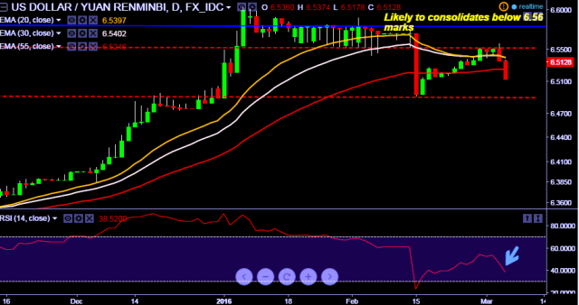 Trading call: Sell USD/CNY around 6.52, stop loss 6.56 and target 6.49 levels.