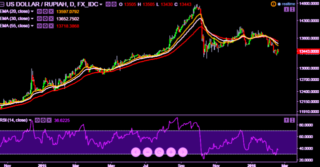 We prefer to take short position in USD/IDR around 13500, stop loss 13605 and target 13201.