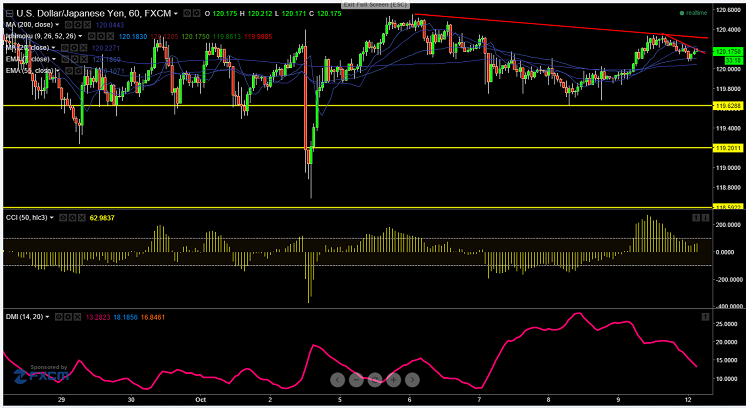USD/JPY is trading in narrow range between 120.60 and 119.60. Any break below 119.60 confirms short term weakness, decline till 119.20/118.60 is possible.