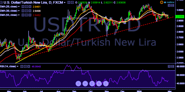 We prefer to take long position in USD/TRY around 2.9350, stop loss 2.9189 and target 2.9662 levels.