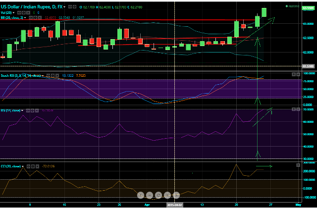As we suppose the US dollar to earn buying support on dips against the rupee. Target and use every possible dips for USD/INR April contract to buy in the currency futures market. The most traded dollar-rupee April contract on the NSE closed at 62.37. The April contract open interest was up 6.02% from the previous day May contract open interest was down 2.87% from the previous day.