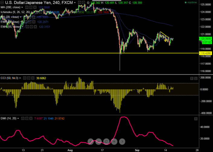 - USD/JPY is consolidating between 119.60 and 120.65 for the past two trading session on account of FOMC meeting which is to be held on Sep 17th 2015.