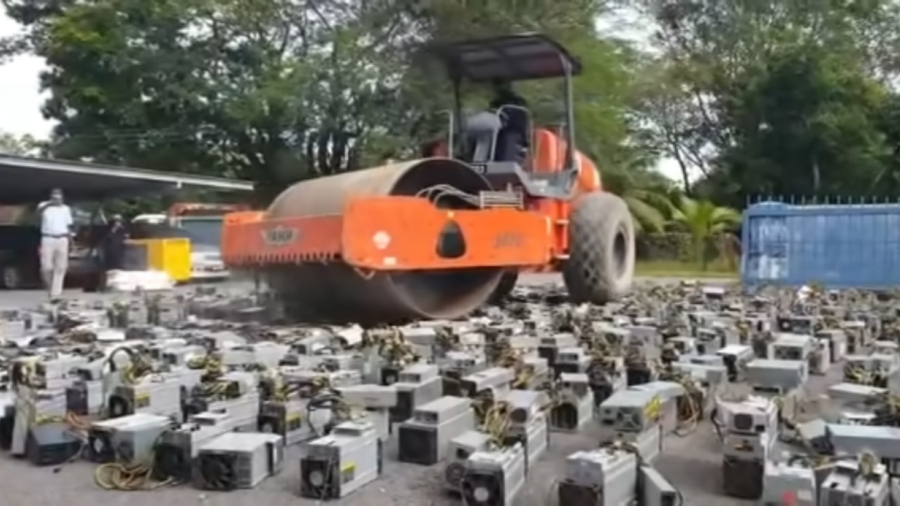A video of Malaysian authorities crushing 1,069 bitcoin mining rigs worth $1.26 million using a steamroller in a parking lot at the police headquarters had gone viral.