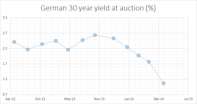 Today Germany will auction 2.5% August 2046 bonds, its first 30 year auction since January. That means investors will first time get a thirty year auction after European Central Bank (ECB) started its asset purchase program and recent rout in the market. Almost € 2 billion worth of bonds are expected to be sold today.