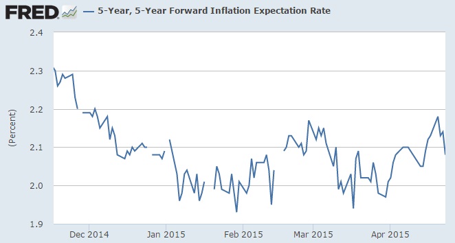 - Inflation expectation in US, as measured by 5 year 5 year (5y5y) forward inflation expectation rate reached peak of 2.17% in February 27, 2015 and from there dovish FOMC has pushed commentary in march has pushed expectation towards 1.94%.
