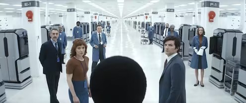 Colleagues at the office in the TV series Severance. Apple TV