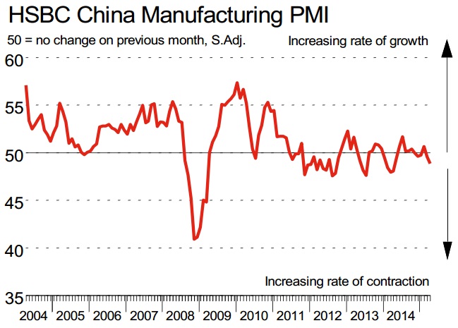 - Latest Manufacturing PMI indicates further weakness in Chinese economy which might lead to further reduction in GDP growth. Growth rate dropped to multiyear low at 7% in first quarter of 2015.