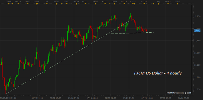 FXCM US dollar index is currently trading at 11990, with support around 11980. However Dollar is trading with weakness ahead of FOMC, especially against pound.