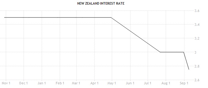 RBNZ has this year actively cut interest rates consecutively for three times since April from 3.5% to 2.75%, which has now pushed Kiwi to 0.638 against Dollar.