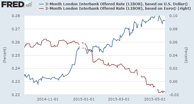 From April last to mid-May there was rout in bond market, mainly European bond market which saw German 10 year yield jumped from 0.05% to 0.75% taking the Euro along. Euro touched as high as 1.145 against dollar, up from 1.05 in March.