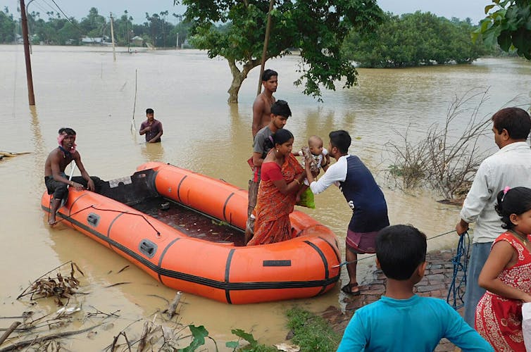 Monsoon flooding in the Himalayan foothills of India, Bangladesh and Nepal affected more than 40m people last year. EPA, CC BY-SA