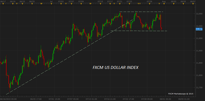 FXCM US dollar index is currently trading at 11988, close to key support. Dollar would fall sharply if key support gets broken 11980.
