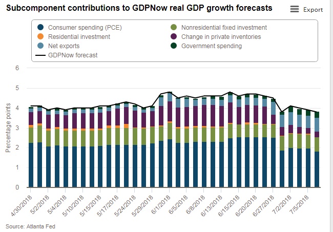 The ‘GDP Now’ data published by the Federal Reserve of Atlanta is posing some concerns over the health of the U.S. economy and more importantly, the effect of the current trade feud on the economy. In mid-June, Atlanta Fed’s GDP Now was forecasting a U.S. economic growth 4.8 percent in the second quarter of this year. It even prompted the Commerce Secretary Wilbur Ross in suggesting while speaking to CNBC that the growth rate will be over 3 percent on an annualized basis and even close to 4 percent.