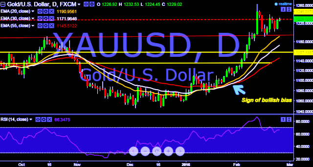 We prefer to take long position in XAU/USD around $1227, Stop loss $1218 and target $1252 levels.