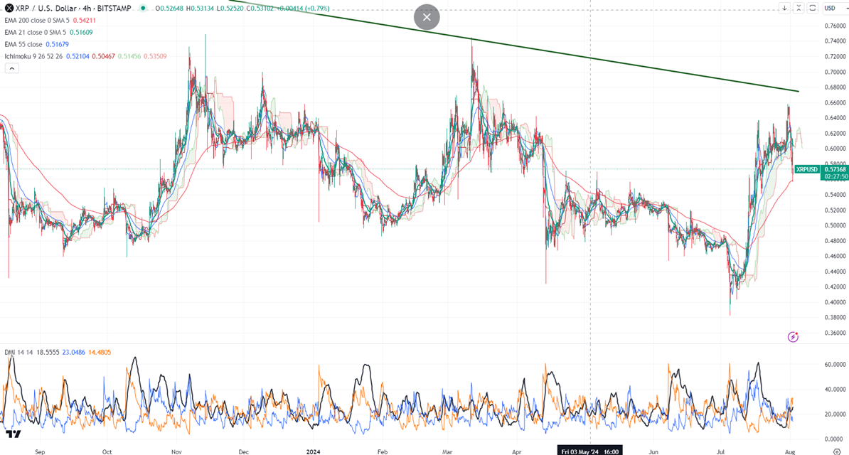 XRPUSD prices lost more than 15% due to uncertainty in the XRP SEC lawsuit. It hit a high of $0.5570 at the time of writing and is currently trading around $0.5720.