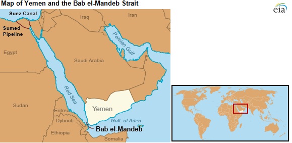 - Despite not a major oil-producing country, Yemen coast borders the Bab el-Mandeb Strait, a narrow chokepoint between the Horn of Africa and the Middle East.