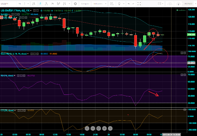 Technical insights:On today's intraday chart, the USD targeting a peak against the JPY resulted by formation of bearish dark cloud cover and evening star candlestick patterns. In addition, negative RSI divergence boosts the box for a downside risk. Near-term resistance is at 122.01. The overall USDJPY trend started to favor the upside.