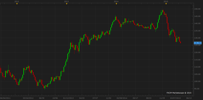 - EUR/JPY is currently trading at 126.4, down 0.35% today so far. Yen has gained 12.8% YTD against Euro so far. Further gains might be ahead. Next target is coming around 119/120 area.