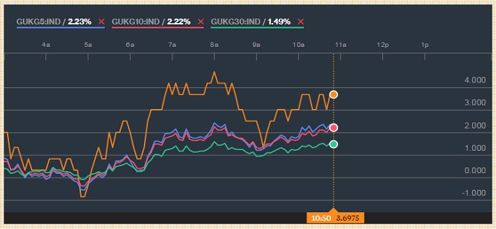 - UK 5 year yield is up 2.3%,trading at 1.51%
