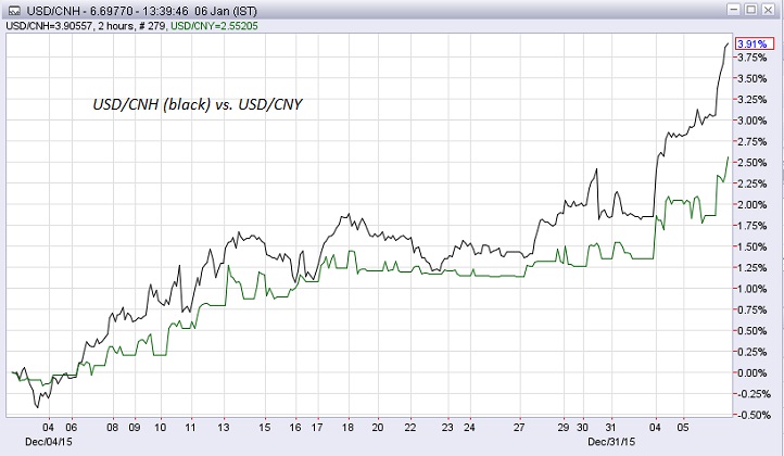Offshore Yuan is currently trading at 6.695 per Dollar and onshore version at 6.57 per Dollar.