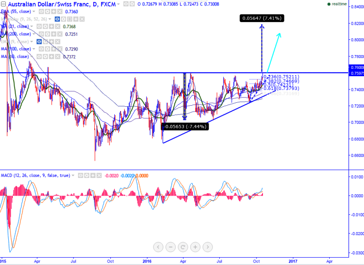 - The pair is facing strong resistance at 0.7600 and any break above 0.76000 confirms the major trend reversal. It is currently trading around 0.75960.