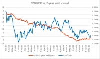 The chart above shows, how the relationship between NZD/USD and 2-year yield divergence has unfolded since 2015. While the spread has narrowed steadily from +300 basis points (bps) in January 2015 to -106 bps as of...