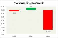 The metal pack is up today. The performance this week at a glance in chart table - Gold: Gold remains under pressure amid a stronger dollar and higher rates. Todays range $1225-1219 Gold is currently trading at...