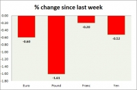 Dollar index trading at 95.40 (+0.33%) Strength meter (today so far) Euro -0.27%, Franc -0.31%, Yen -0.11%, GBP -0.63% Strength meter (since last week) Euro -0.60%, Franc -0.20%, Yen -0.52%, GBP -1.61% EUR/USD...