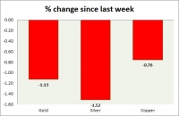 The metal pack is down today. A performance this week at a glance in chart table - Gold: Gold has cleared a key support amid a stronger dollar. Todays range $1229-1220 Gold is currently trading at $1226/troy...