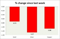 The metal pack is down today. The performance this week at a glance in chart table - Gold: Gold is heading lower amid a stronger dollar. Testing a key support line at the moment. Todays range $1245-1230 Gold is...