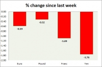 Dollar index trading at 94.77 (+0.05%) Strength meter (today so far) Euro +0.01%, Franc -0.40%, Yen -0.38%, GBP +0.14% Strength meter (since last week) Euro -0.59%, Franc -1.09%, Yen -1.76%, GBP -0.32% EUR/USD...