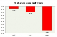 The metal pack is mixed today. The performance this week at a glance in chart table - Gold: Gold is down this week again but recovered some of the earlier loss. Todays range $1237-1253 Gold is currently trading...