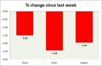 The metal pack is up today. Performance this week at a glance in chart table - Gold: Gold is down this week as strong dollar weighs. Todays range $1245-1253 Gold is currently trading at $1250/troy ounce....