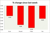 Dollar index trading at 95.00 (+0.35%) Strength meter (today so far) Euro -0.33%, Franc -0.33%, Yen -0.23%, GBP -0.44% Strength meter (since last week) Euro -0.34%, Franc -0.74%, Yen -0.43%, GBP -0.64% EUR/USD...