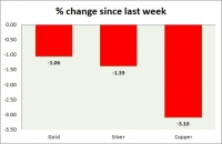 The metal pack is down today. Performance this week at a glance in chart table - Gold: Gold is down this week as strong dollar weighs. Todays range $1270-1261 Gold is currently trading at $1266/troy ounce....