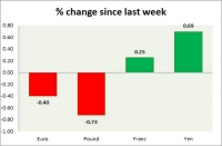 Dollar index trading at 95.12 (+0.38%) Strength meter (today so far) Euro -0.64%, Franc -0.06%, Yen +0.23%, GBP -0.63% Strength meter (since last week) Euro -0.40%, Franc +0.25%, Yen +0.69%, GBP -0.73% EUR/USD...