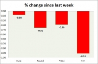 Dollar index trading at 93.84 (+0.02%) Strength meter (today so far) Euro +0.08%, Franc +0.08%, Yen -0.08%, GBP -0.30% Strength meter (since last week) Euro -0.08%, Franc -0.29%, Yen -0.91%, GBP -0.36% EUR/USD...