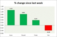 Dollar index trading at 93.45 (-0.45%) Strength meter (today so far) Euro +0.49%, Franc +0.00%, Yen -0.05%, GBP +0.21% Strength meter (since last week) Euro +1.13%, Franc +0.37%, Yen -0.39%, GBP +0.83% EUR/USD...