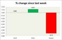 The metal pack is down today. The performance this week at a glance in chart table - Gold: Gold is struggling despite weak dollar as risk aversion subsides. Todays range $1307-1298 Gold is currently trading at...