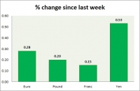 Dollar index trading at 93.87 (-0.20%) Strength meter (today so far) Euro +0.15%, Franc +0.21%, Yen -0.08%, GBP +0.29% Strength meter (since last week) Euro +0.28%, Franc +0.15%, Yen +0.53%, GBP +0.20% EUR/USD...