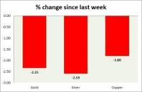 The metal pack is down today. The performance this week at a glance in chart table - Gold: Gold declining sharply as risk aversion eased and dollar recovers. Todays range $1286-1297 Gold is currently trading at...