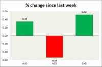 Dollar index trading at 92.4 (-0.35%) Strength meter (today so far) Aussie +0.43%, Kiwi +0.11%, Loonie -0.05% Strength meter (since last week) Aussie +0.35%, Kiwi -0.54%, Loonie +0.52% AUD/USD Trading at...
