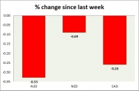 Dollar index trading at 92.85 (+0.28%) Strength meter (today so far) Aussie -0.10%, Kiwi -0.36%, Loonie -0.19% Strength meter (since last week) Aussie -0.51%, Kiwi -0.73%, Loonie -0.39% AUD/USD Trading at...