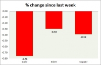 The metal pack is down today. The performance this week at a glance in chart table - Gold: Gold declining as risk aversion eased and dollar recovers. Todays range $1308-1316 Gold is currently trading at...
