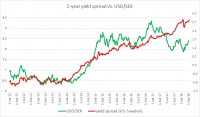 The chart above shows, how the relationship between USD/SEK and 2-year yield spread has unfolded since 2012. The Sveriges Riksbank (SRB) began reducing interest rates (repo rates) in the aftermath of the Great...