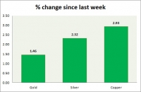 The metal pack is mixed today. Performance this week at a glance in chart table - Gold: Gold is heading higher amid geopolitical tensions and on a weaker dollar. Todays range $1355-1338 Gold is currently...